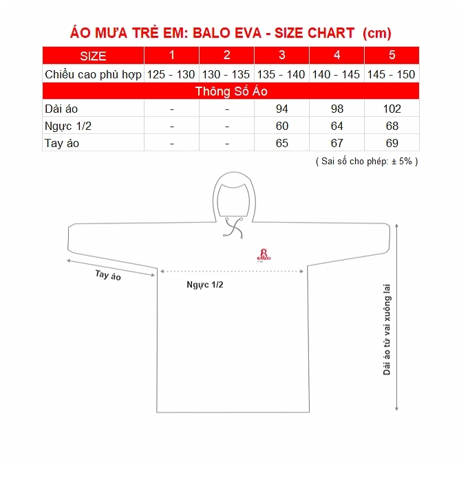 Áo mưa Balo EVA trẻ em là một lựa chọn hoàn hảo cho những phụ huynh đang tìm kiếm một chiếc áo mưa tiện ích, gọn nhẹ và thời trang cho bé yêu của mình. Kiểu dáng thiết kế là dòng áo mưa dạng khoác 1 người, form rộng rãi, che chắn toàn thân khi đi dưới mưa.