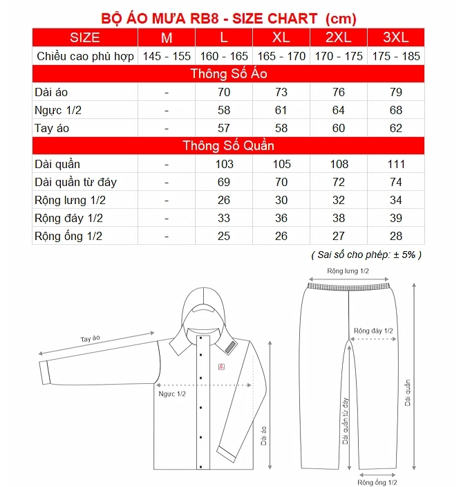 - Bộ áo mưa RB2 vượt trội về chất lượng, sử dụng lâu dài, chống thấm ướt khi đi mưa to và giữ ấm được cơ thể mà những bộ quần áo đi mưa thông thường chỉ mặc để ứng phó