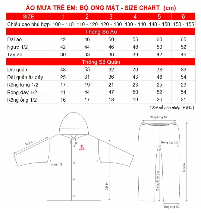 - Hầu hết trẻ em thường không thấy thoải mái khi dùng chung áo mưa với bố mẹ, vì vậy, cần có loại áo mưa phù hợp với lứa tuổi và chiều cao của trẻ em. Áo Mưa Rando bộ Ong Mật có thiết kế đáng yêu với họa tiết con Ong Mật dễ thương sẽ khiến trẻ em thích hơn, năng động hơn, thoải mái khi đi trong mưa.