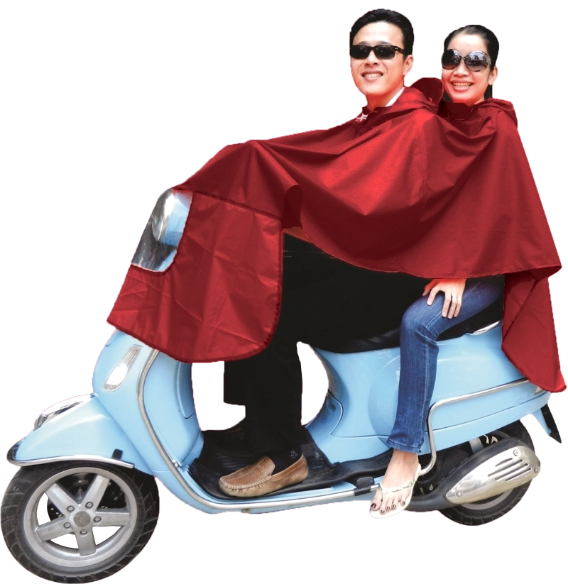 - Áo mưa che đôi với thiết kế áo mưa 2 nón giúp linh hoạt che mưa cho 2 người người mặc. Mặt trước có kiếng trong suốt không cảng ánh đèn xe khi đi đêmChất liệu vải Nylon/PVC chính phẩm – an toàn sức khỏe. Mặt trước có kiếng trong suốt không cảng ánh đèn xe khi đi đêm