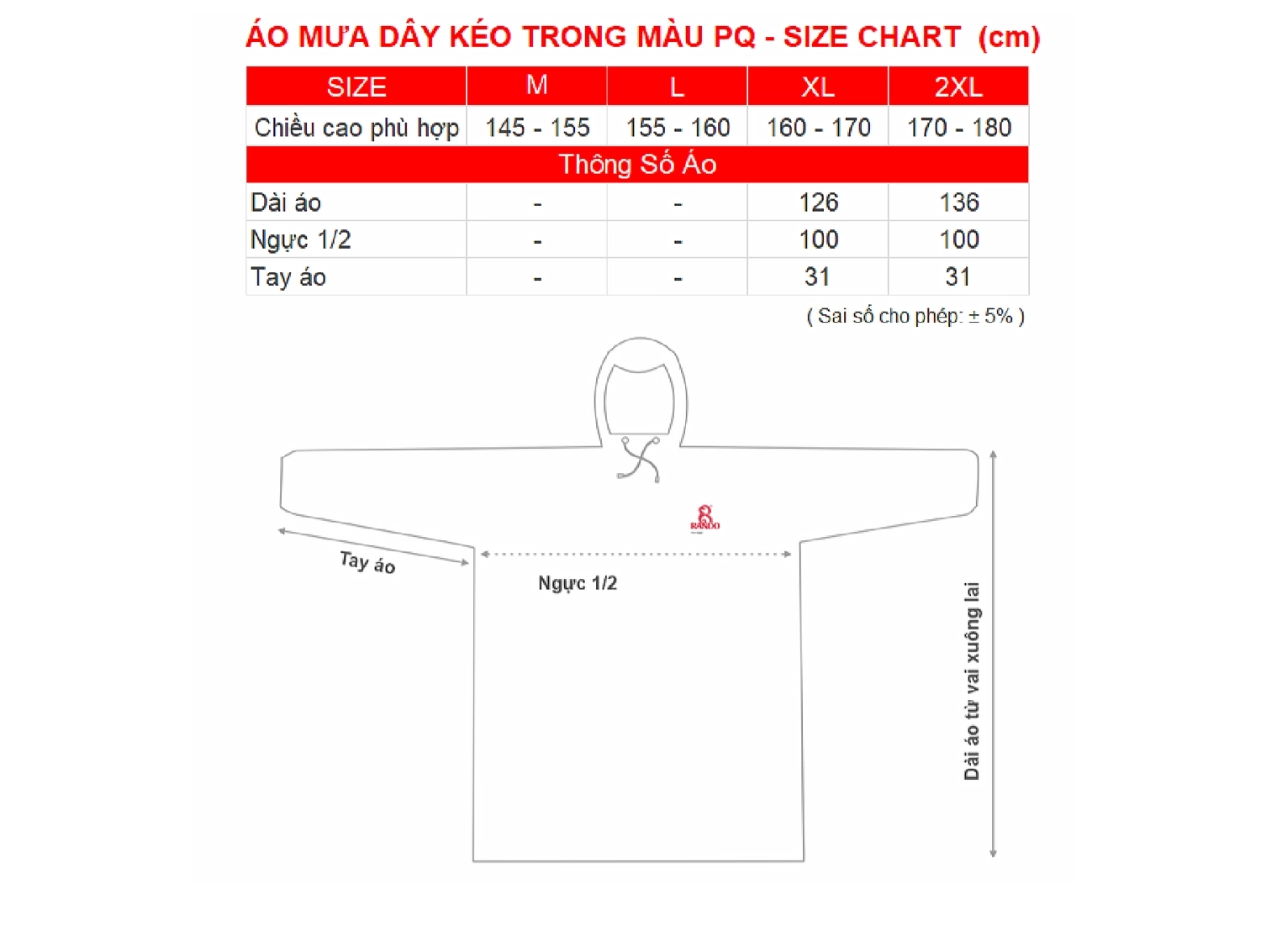 Áo mưa dây kéo trong màu phản quang RANDO có hai size: