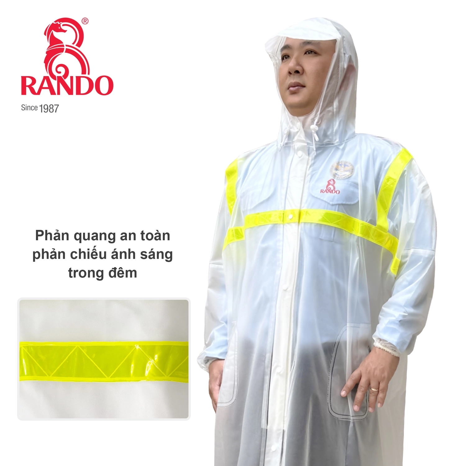 Áo mưa dây kéo trong màu phản quang RANDO là dòng sản phẩm cao cấp, được thiết kế nhằm mang lại sự tiện lợi và an toàn tối đa cho người sử dụng. Với chất liệu PVC an toàn, không chứa độc tố Phthalate, sản phẩm đảm bảo sức khỏe cho người sử dụng.