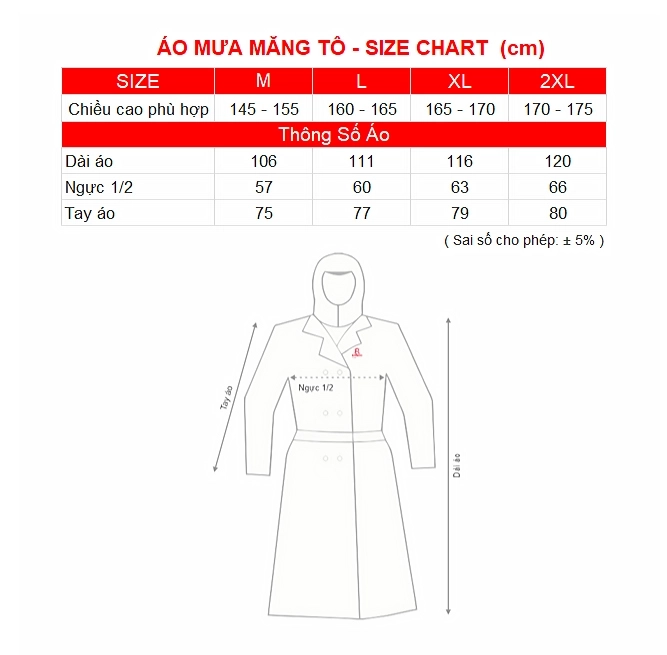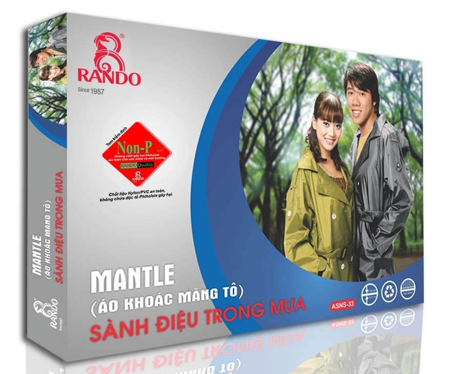 Áo mưa măng tô (mantle) Nam và Nữ, có nhiều kích cỡ và màu sắc phù hợp với vóc dáng của người Việt. Sản phẩm được đóng hộp bao bì trang nhã, sang trọng, là sản phẩm vừa bảo vệ sức khỏe và làm đẹp vào mùa mưa, cũng là món quà ý nghĩa cho bạn bè, người thân.