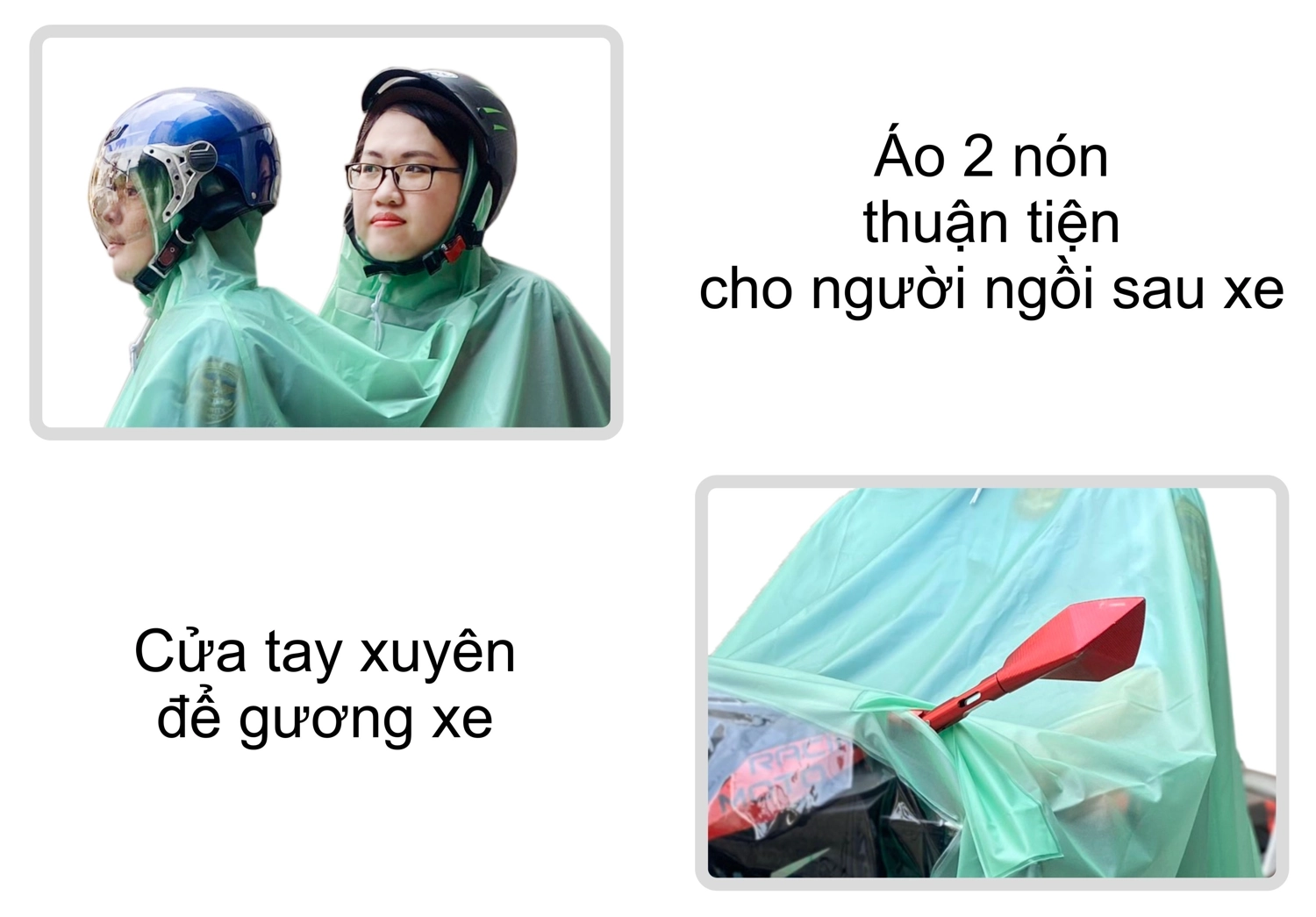 - Áo 2 nón thuận tiện cho người ngồi sau xe