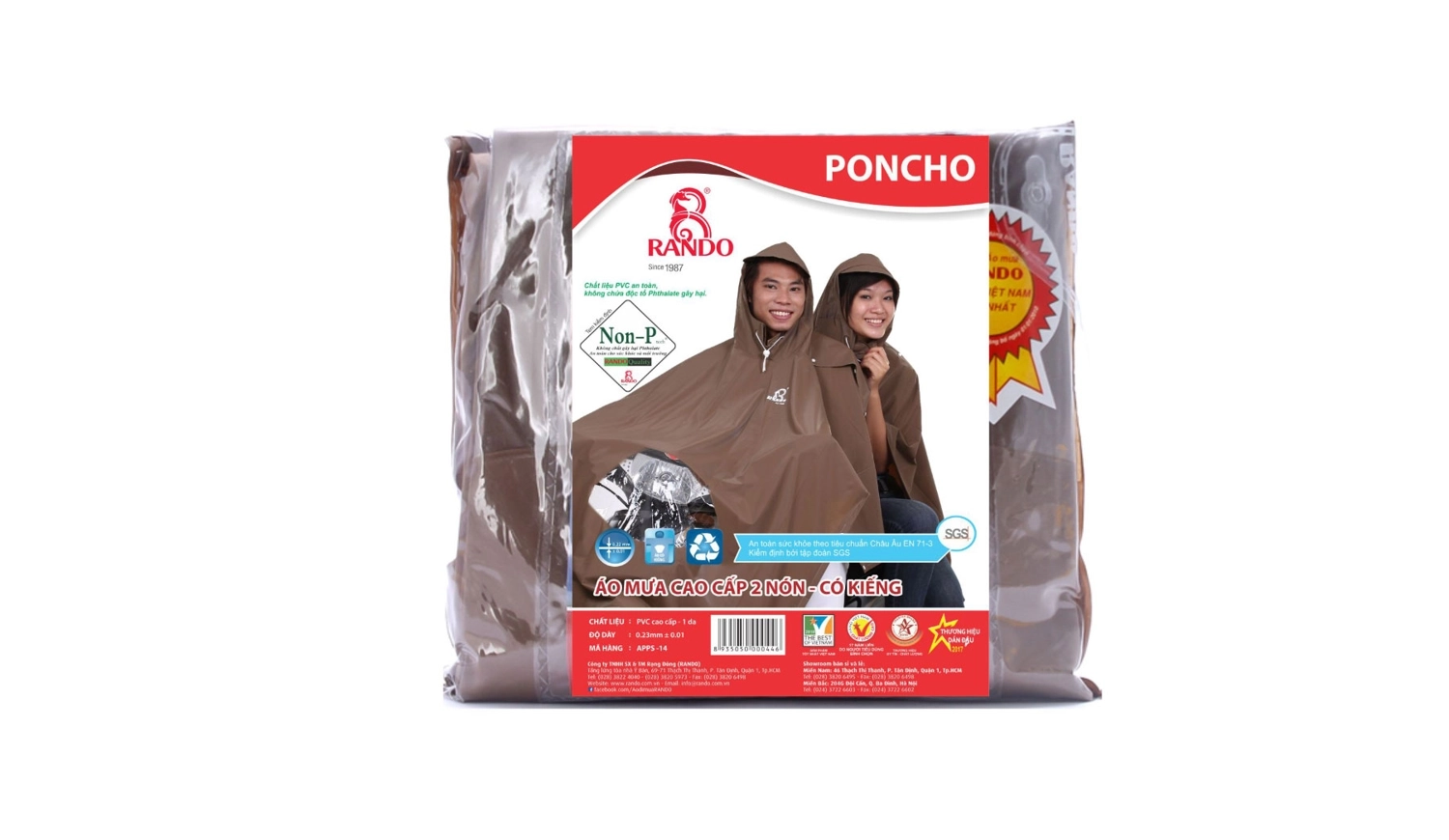 Áo mưa Poncho 2 nón cao cấp kiếng