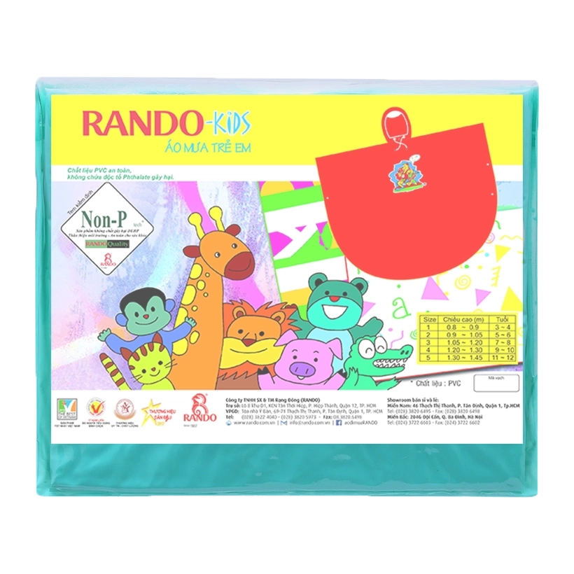 Chất liệu PVC, thân thiện môi trường, an toàn sức khỏe, không mùi hôi, không độc hại tạo sự thoải mái cho bé khi mặc, chống thấm hiệu quả, bảo vệ sức khỏe bé yêu của bạn khỏi nguy cơ cảm lạnh do ướt mưa.