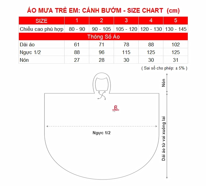 Áo mưa Poncho cánh Bướm Trẻ Em