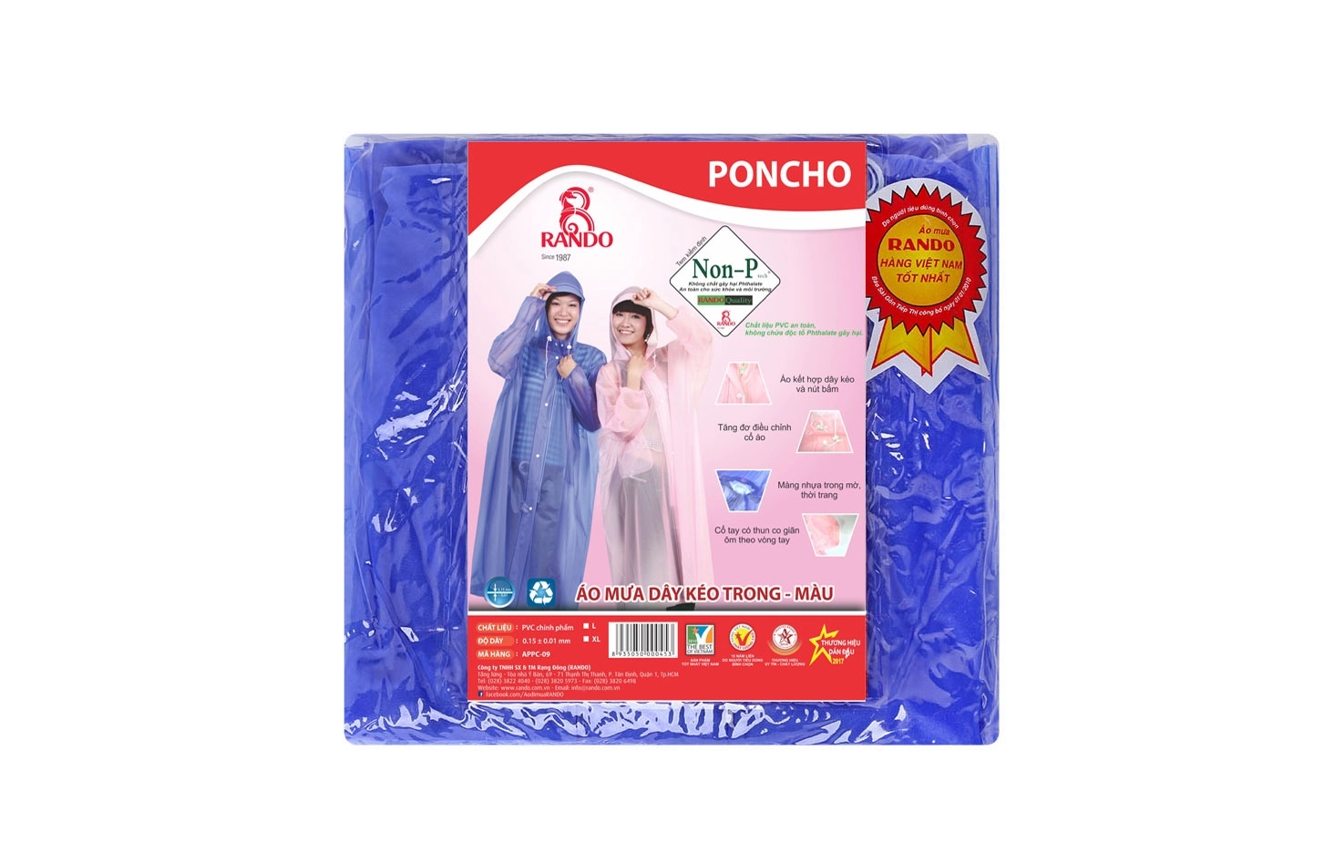 - Áo đi mưa bít sườn kết hợp dây kéo