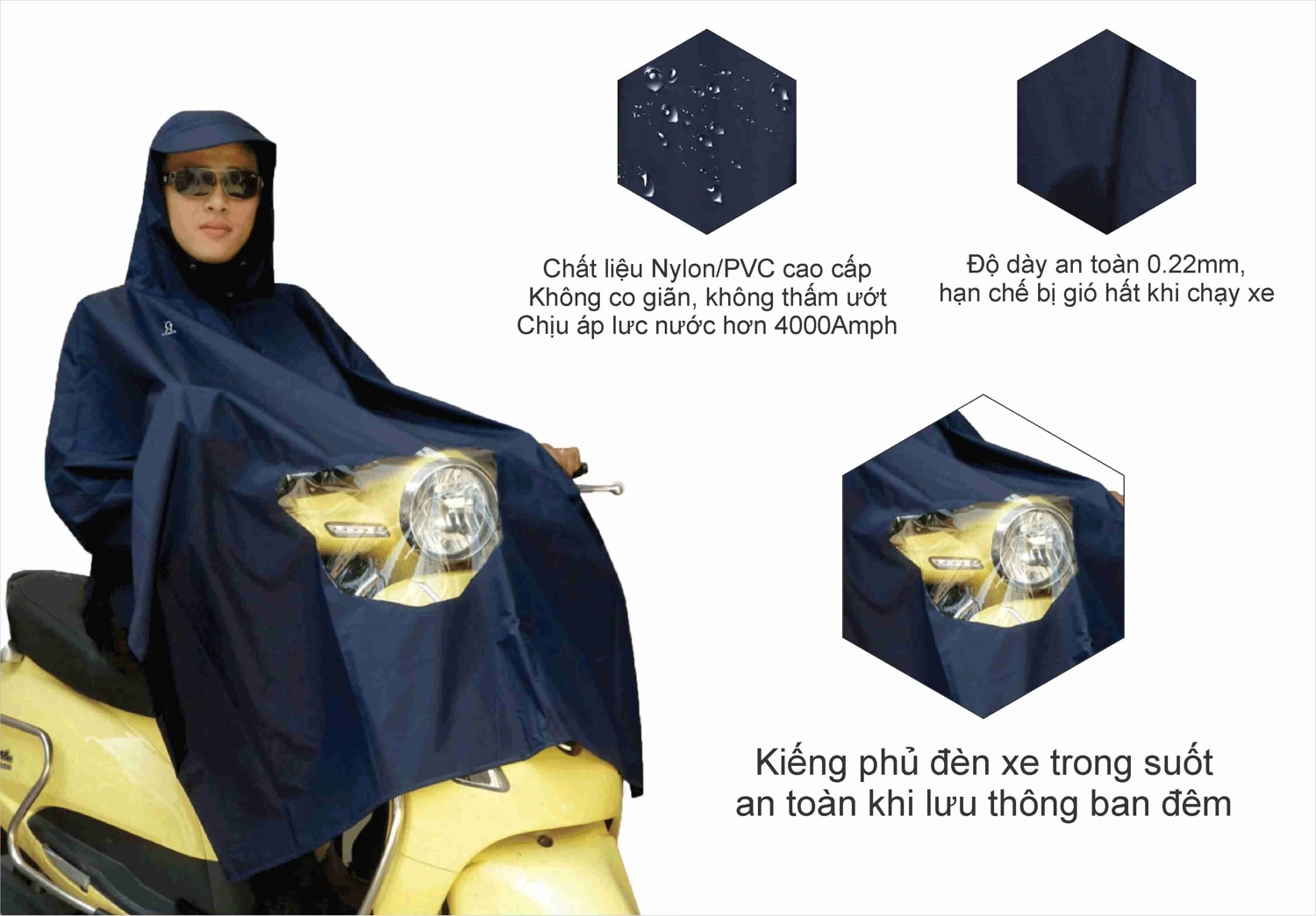 Sản phẩm an toàn khi đi ngoài trời mưa lớn, độ trượt nước cao, nhanh khô. Độ dày chất liệu 0.22mm bền bỉ, hạn chế bị gió hất khi đi xe máy.