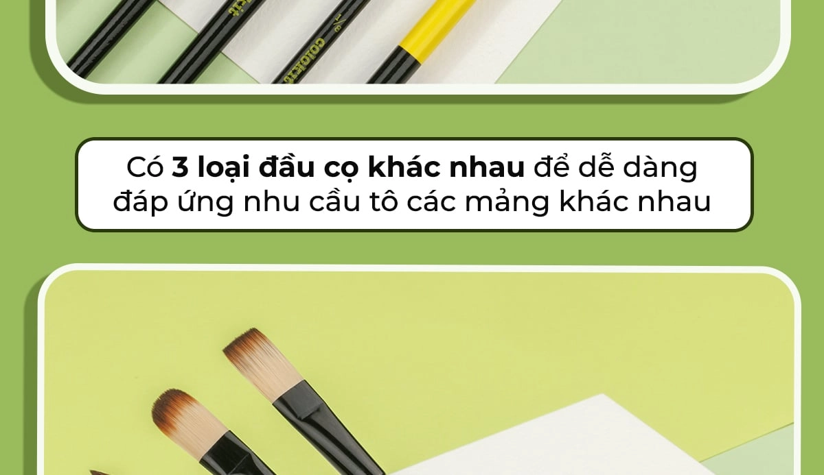 - Có 3 loại đầu cọ round/ flat/ filbert, phục vụ đa dạng nhu cầu sử dụng.