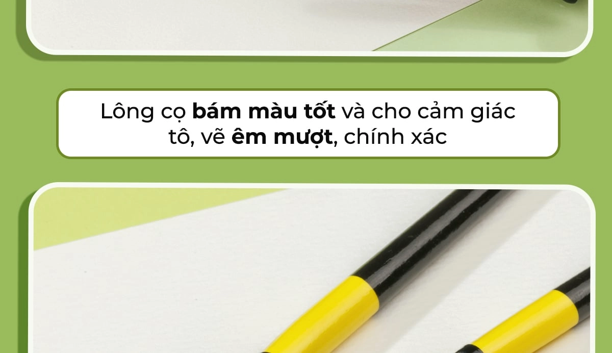 - Lông cọ mềm, dễ thao tác và điều chỉnh màu sắc đậm nhạt.