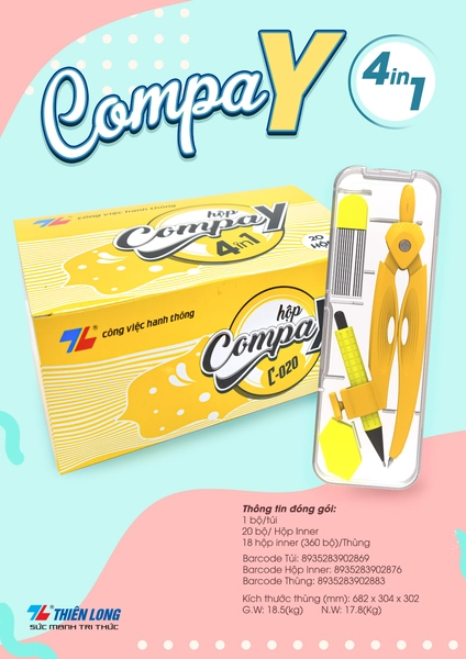 Compa Thiên Long Y C-020 là dụng cụ học tập quan trọng, không thể thiếu của học sinh, sinh viên, là trợ thủ đắc lực của dân văn phòng, kiến trúc sư,... Giúp người dùng dễ dàng vẽ các đường cong hình học, hình tròn, hình oval, xoắn ốc, hình bán nguyệt,...