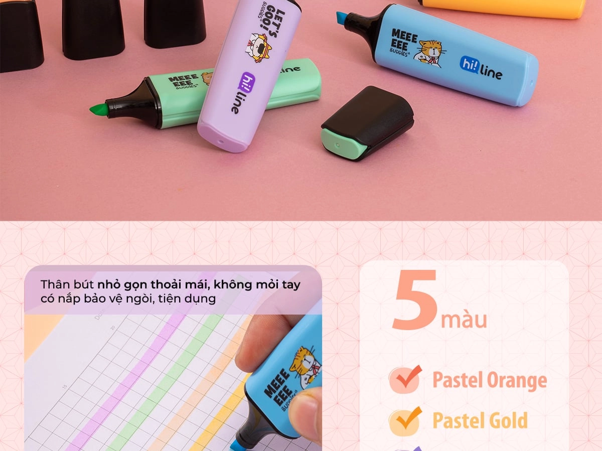 Bút dạ quang màu Pastel Hi! Line Thiên Long HL-023 - Đầu bút siêu mềm, lướt giấy nhẹ êm