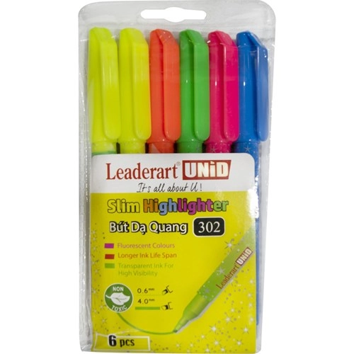 Bút dạ quang LeaderArt LA302HL là dòng bút đánh dấu chuyên dụng với thiết kế thân mảnh hiện đại, nắp nhựa cài tiện lợi. Sản phẩm có màu mực tươi sáng, lâu phai, không lem và an toàn cho sức khỏe, phù hợp cho học sinh, sinh viên và môi trường văn phòng.