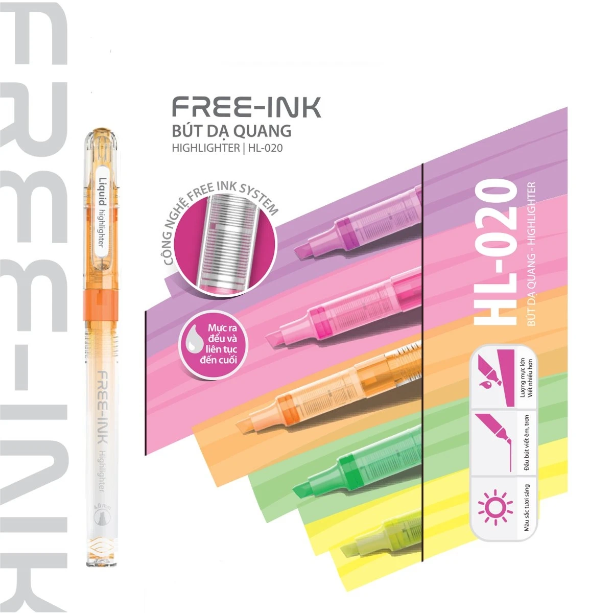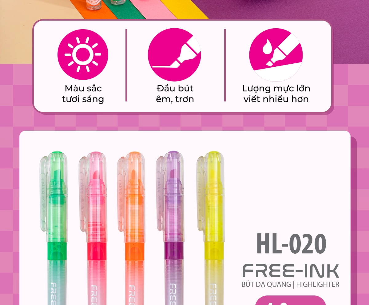 HL-020 là lựa chọn đáng tin cậy trong phân khúc bút dạ quang phổ thông, nổi bật với công nghệ mực tiên tiến giúp sử dụng ổn định và lâu dài.