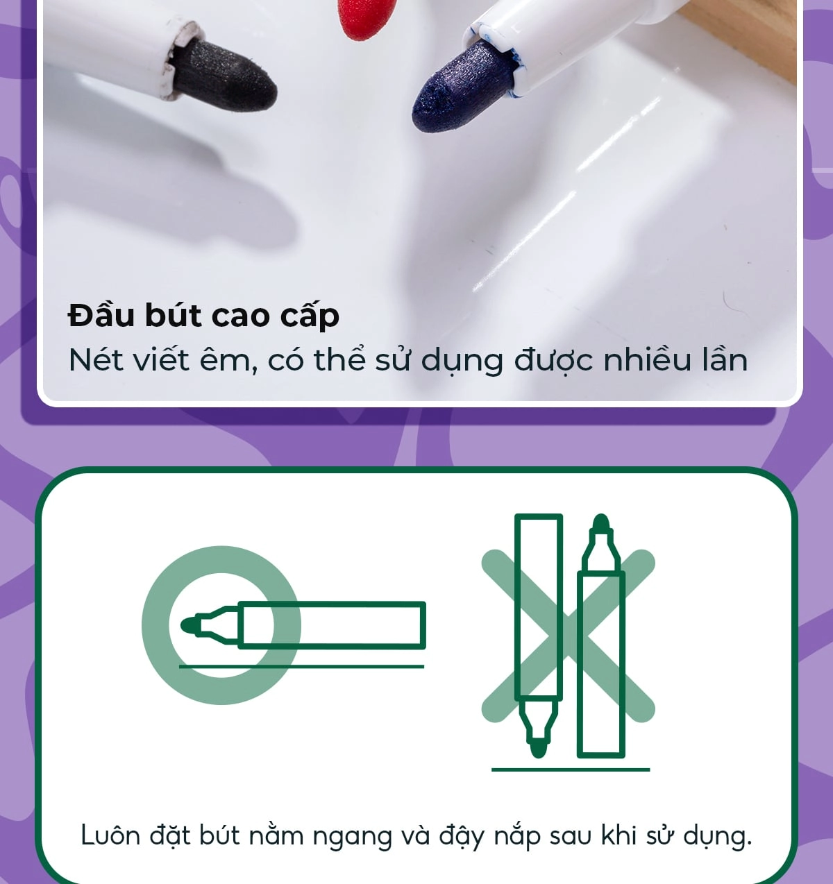 Màu sắc tươi sáng, dễ lau sạch ngay cả khi để lâu, không để lại bóng mực