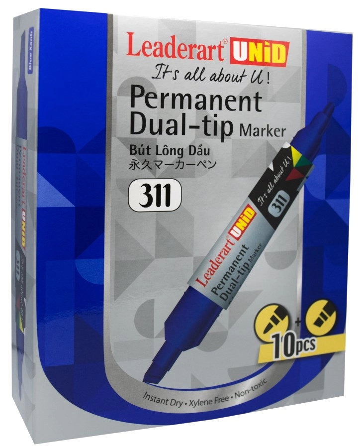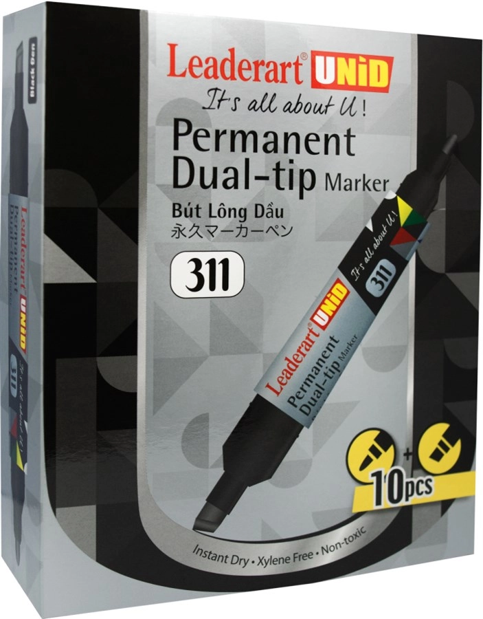 Bút lông dầu hai đầu cỡ lớn LeaderArt UNID LA311 – Hộp 10 chiếc