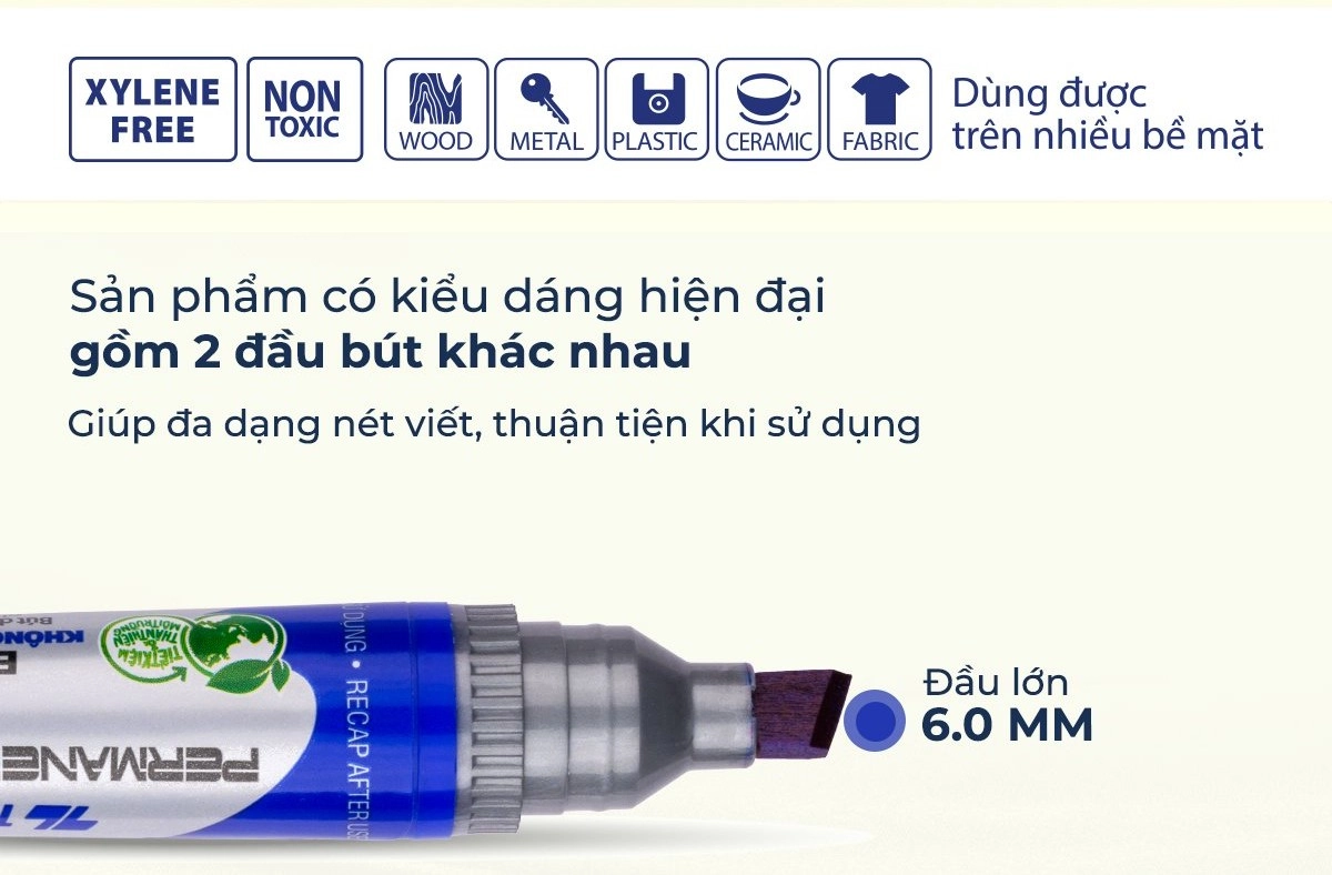 - Sản phẩm có kiểu dáng hiện đại gồm 2 đầu bút khác nhau: đầu nhỏ và lớn giúp đa dạng nét viết, thuận tiện khi sử dụng.