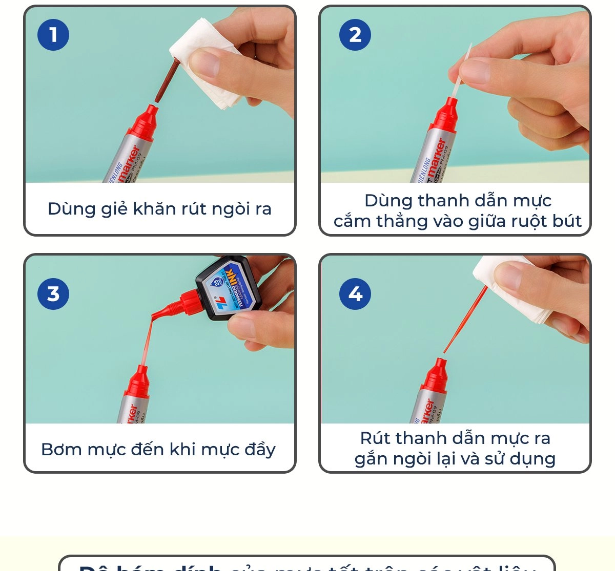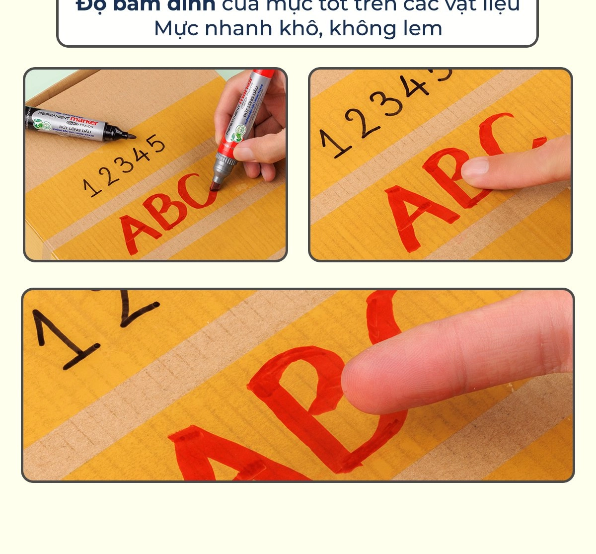 - Độ bám dính của mực tốt trên các vật liệu: Giấy, gỗ, da, nhựa, thủy tinh, kim loại, gốm, sứ, đĩa CD...