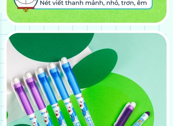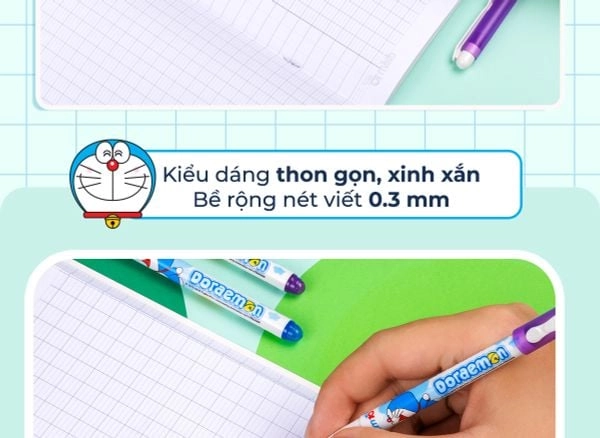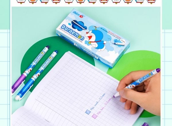 - Thân in hình Doraemon rất được các bạn trẻ yêu mến và sinh động tạo sự thích thú cho các em rèn luyện chữ viết