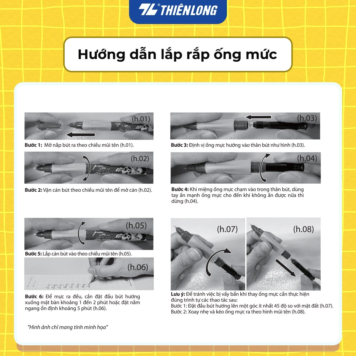 • Bút máy Thiên Long Chipy FTC-020 – thiết kế sang trọng màu vàng mực đen, màu xanh mực xanh, màu hồng mực tím,