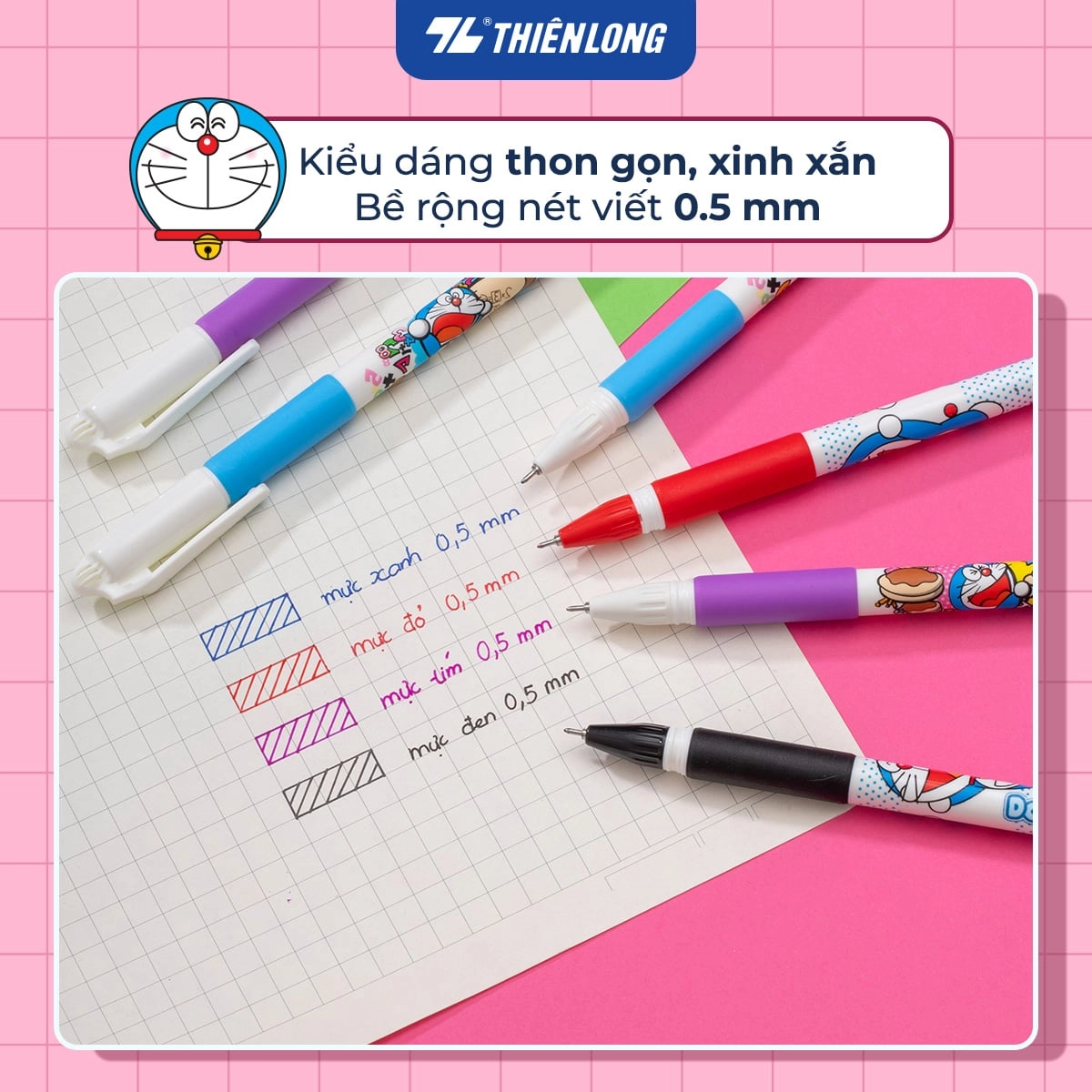 Với thiết kế in hình nhân vật Doraemon thu hút, bút gel Thiên Long Doraemon GEL-012/DO có thiết kế đơn giản nhưng khoa học, phù hợp với tay cầm của học sinh tiểu học. Sản phẩm có đầu bi sản xuất tại Thụy Sĩ tạo nét viết êm trơn.
