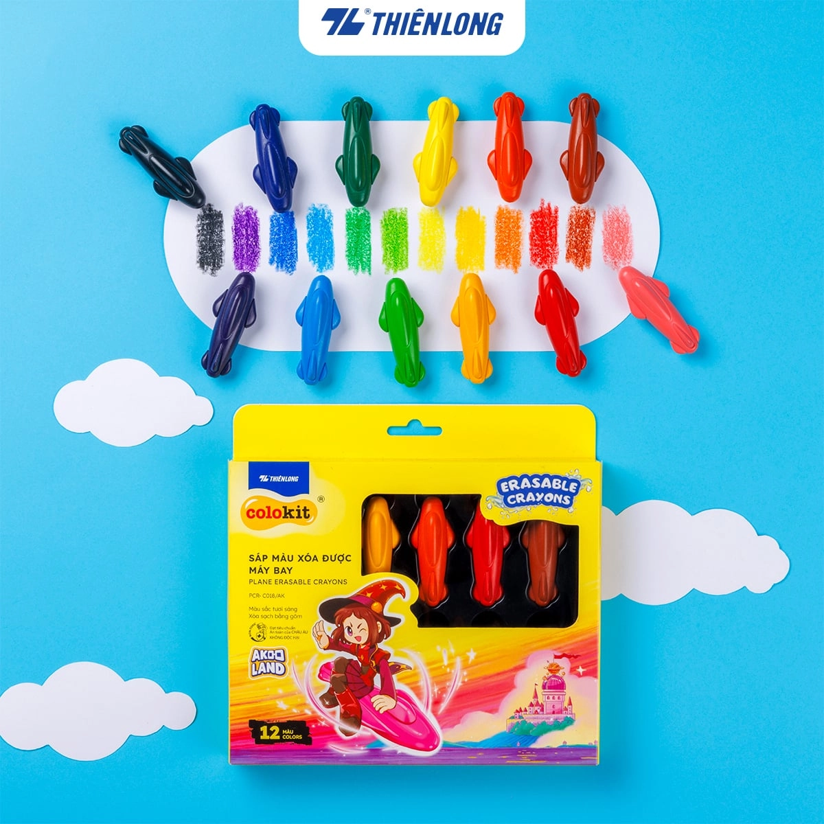 Bút Sáp Màu Rửa Được Colokit PCR-C018/AK thuộc bộ Futy Akooland – Thế Giới Học Cụ Thần Kỳ, nổi bật với thiết kế hình máy bay độc đáo, giúp bé vừa học vừa chơi đầy hứng thú.