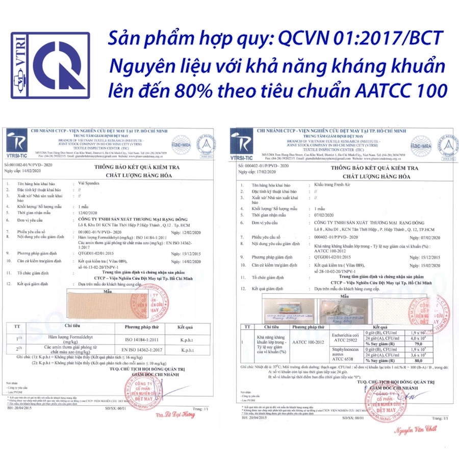 - Nguyên liệu với khả năng kháng khuẩn, tỷ lệ suy giảm của vi khuẩn lên đến 80% theo tiêu chuẩn AATCC 100-2012 được giám định bởi Viện Nghiên Cứu Dệt May TPHCM