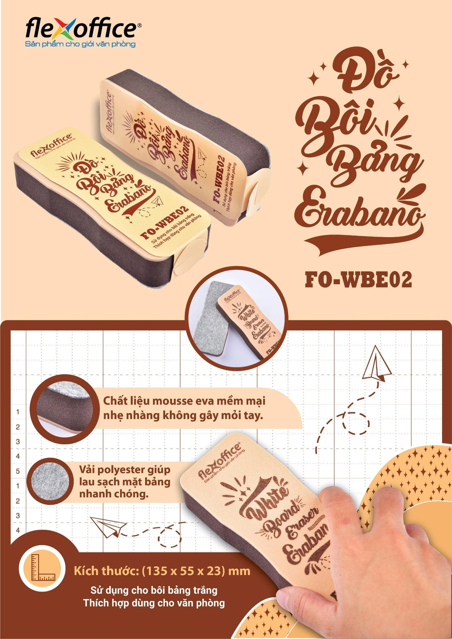 - Lau bảng trắng Flexoffice FO-WBE02 dùng để lau sạch bảng trắng