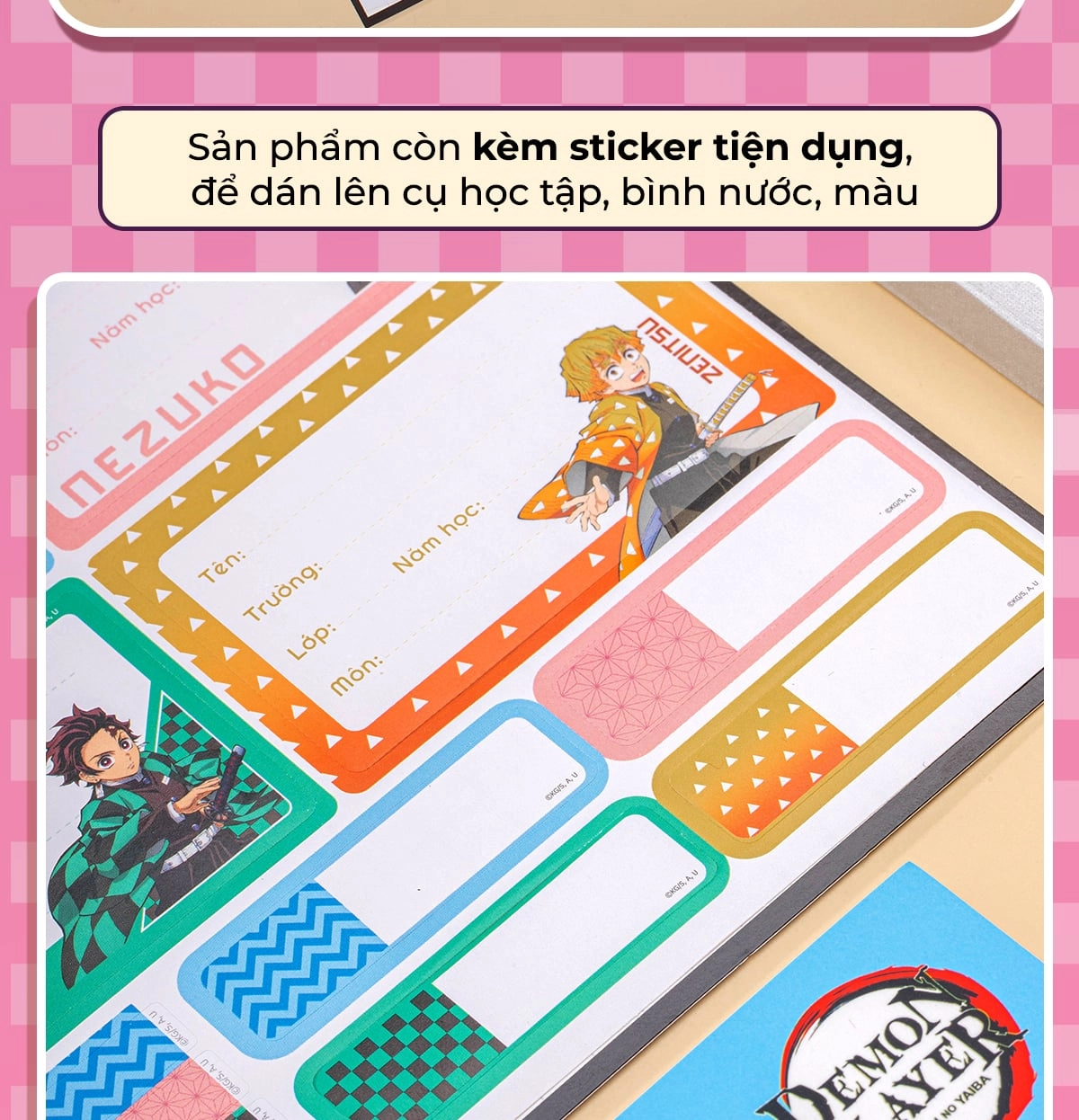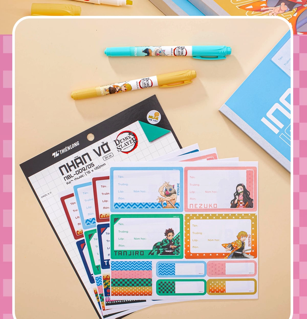 Nhãn Vở Thiên Long Demon Slayer NBL-009DS Chính Hãng – Tem Dán Vở Học Sinh Đẹp, Cá Tính