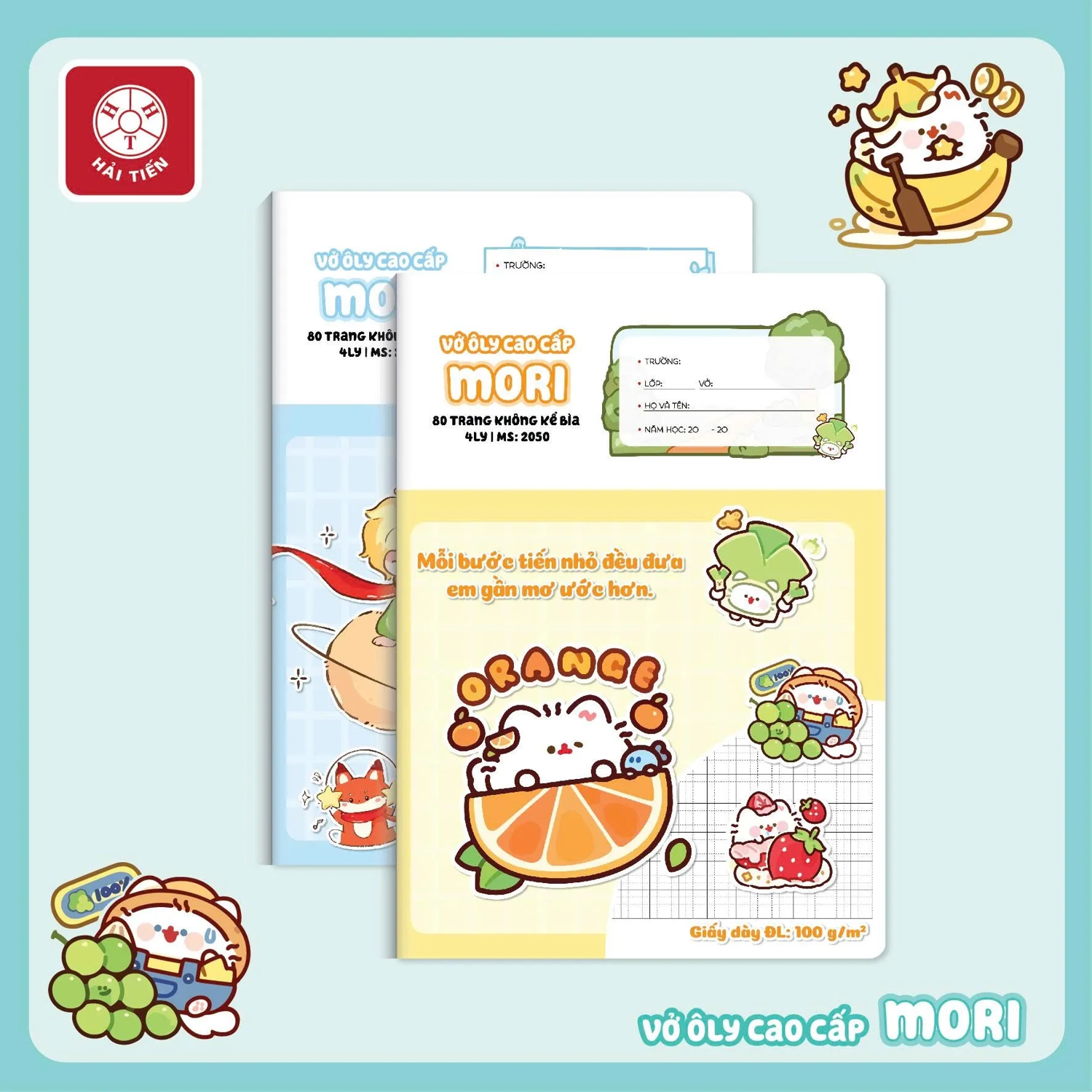 ? Vở ô ly Mori 48 trang là dòng vở học sinh cao cấp với giấy dày 100gsm, thiết kế bìa sáng tạo, giúp bé học tốt hơn và luyện chữ đẹp mỗi ngày.